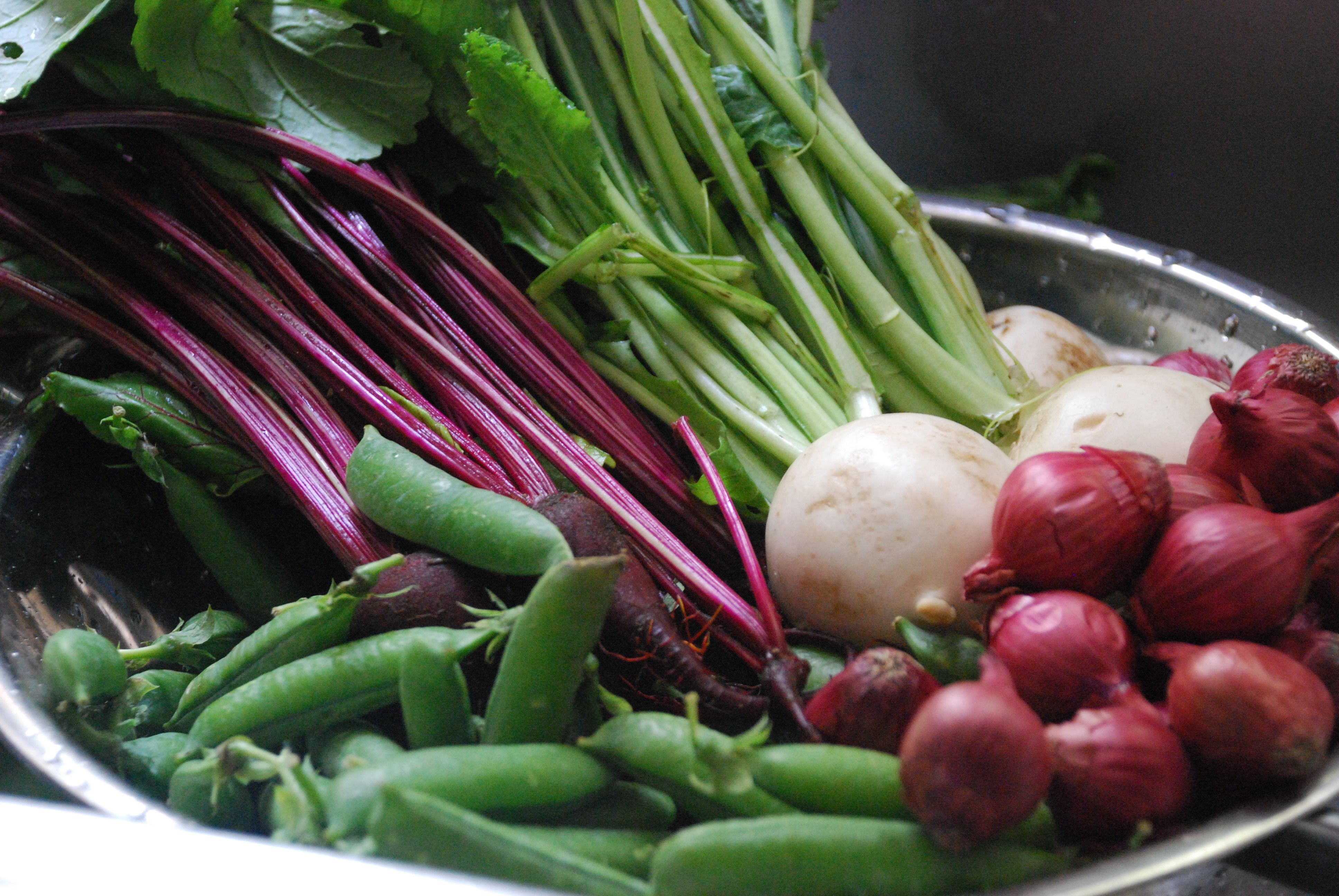 Example of vegetables that could be used: Green Peas, Fava Beans, Young White or Red Turnips, Carrots, Baby Beets, Parsnips, Sugar Snap Peas, Garlic Scapes, etc. (see example in chart below)