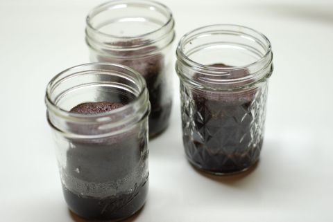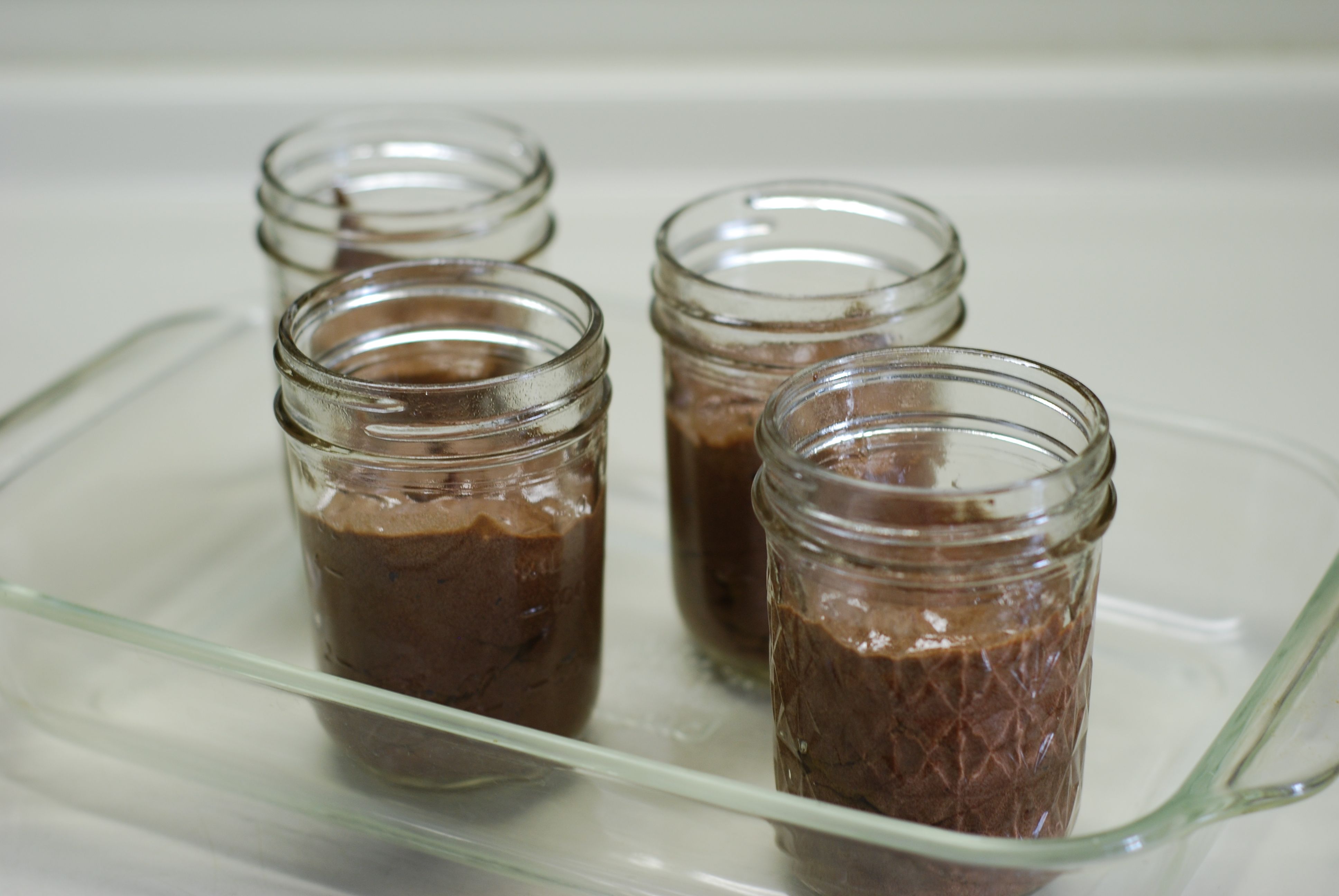 NOTE: The cakes will rise to the top but shrink down to three-fourths the height of the jar. When the cakes cool they pull away from the glass, so the toppings will drip down the sides as opposed to forming a flat layer of frosting on top of cakes.