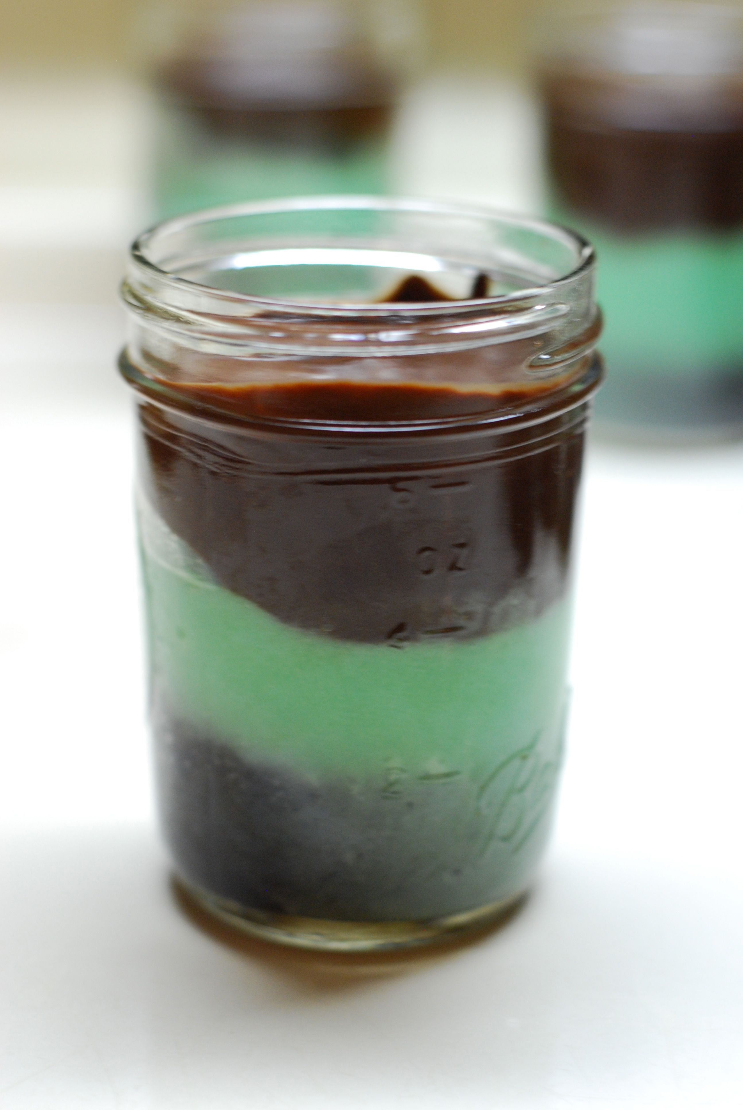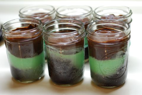 TO MAKE MINT TOPPING: In a bowl combine confectioners sugar, melted butter, milk, vanilla and peppermint extracts, and green food coloring. Divide mint topping among jars and pat sides of jar to help spread mint topping onto cakes.